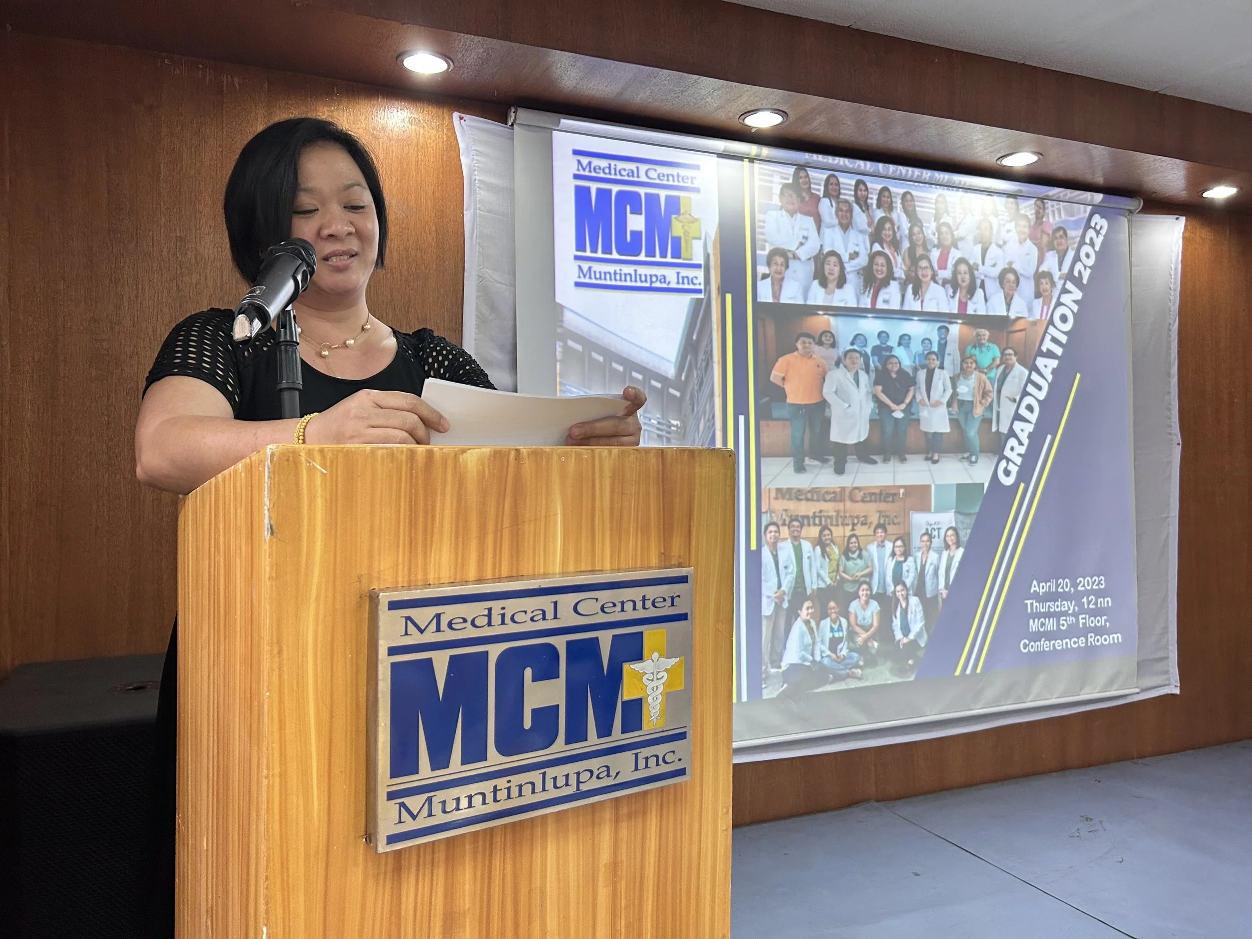 MUNTINLUPA, April 22, 2023 - Medical Center Muntinlupa (MCM) celebrated its annual Residents’ Graduation Ceremony on Thursday, April 20, 2023, at the 5th floor of the hospital. The event was held to honor and congratulate the seven graduates of the Internal Medicine and Pediatrics departments, along with their families.